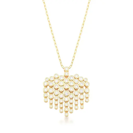 3020189 - COLAR COM PINGENTE DE CORAÇÃO COM ZIRCÔNIAS BANHADO A OURO