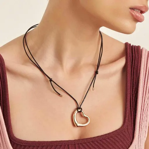 3022525 - COLAR REGULÁVEL EM COURINO DE CORAÇÃO LISO E VAZADO