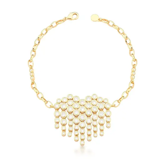 0509902 - PULSEIRA COM PINGENTE DE CORAÇÃO COM ZIRCÔNIAS BANHADA A OURO