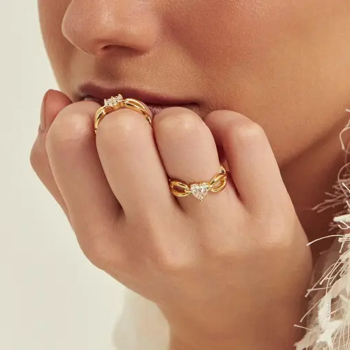 0118813 - ANEL DE CORAÇÃO EM CRISTAIS COM ELOS VAZADOS