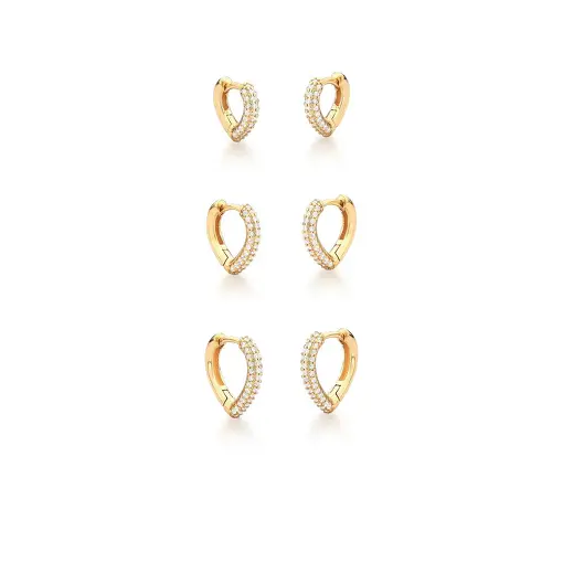 0236437 - KIT TRÊS PARES DE ARGOLA DE CORAÇÃO CRAVEJADA BANHADA A OURO