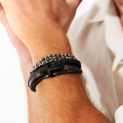 0510732 - PULSEIRA COM GEOMÉTRICOS E FECHO SHAMBALA EM AÇO