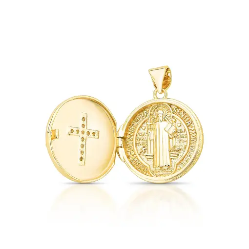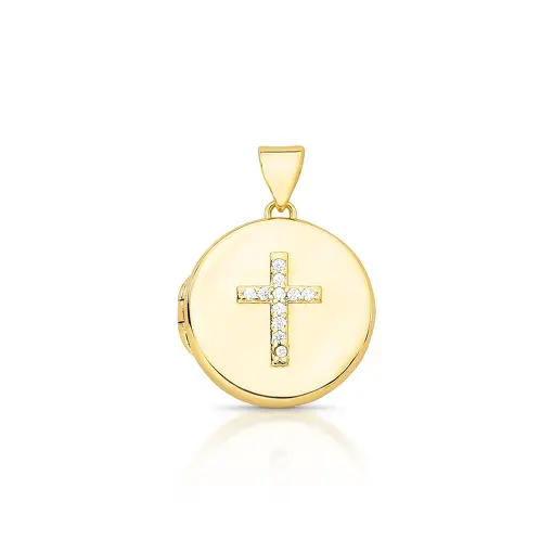 0307970 - PINGENTE RELICÁRIO REDONDO DE CRUZ COM ZIRCÔNIAS