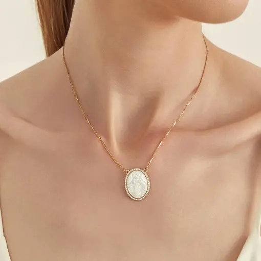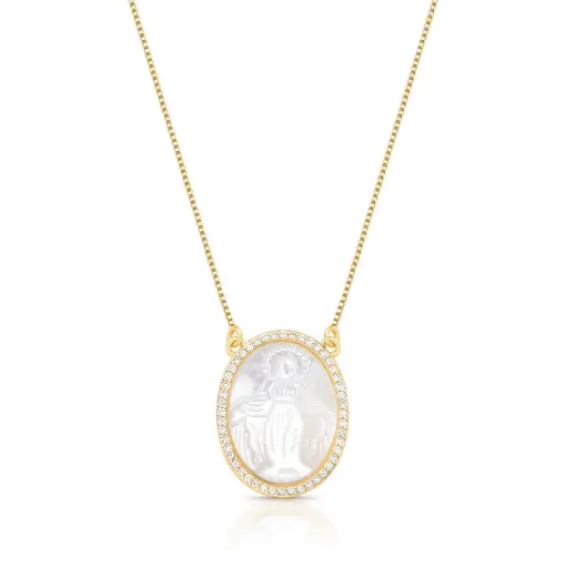 3018427 - COLAR COM IMAGEM DE NOSSA SENHORA DAS GRAÇAS EM MADREPÉROLA