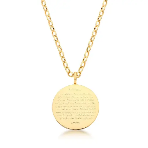 3019304 - COLAR COM PINGENTE REDONDO ORAÇÃO DO PAI NOSSO BANHADO A OURO