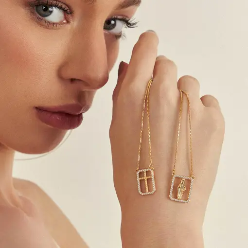 3013377 - ESCAPULÁRIO COM PINGENTES RELIGIOSOS EM ZIRCÔNIAS