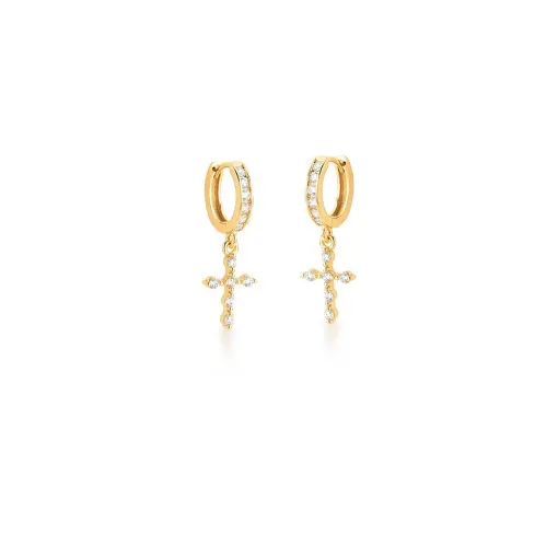 0230664 - ARGOLA COM PINGENTE DE CRUZ E ZIRCÔNIAS BRANCAS BANHADA A OURO
