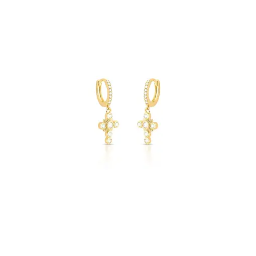 0243394 - ARGOLA REDONDA COM IMAGEM DE CRUZ EM CRISTAIS E ZIRCÔNIAS