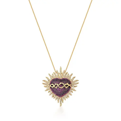 3008677 - CORRENTE COM PINGENTE DE SAGRADO CORAÇÃO BANHADA A OURO