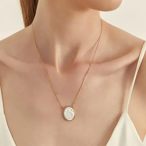3021327 - COLAR COM PINGENTE MADREPÉROLA NOSSA SENHORA BANHADO A OURO