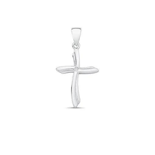 0308314 - PINGENTE DE CRUZ CURVO COM ZIRCÔNIA PRATA RODINADA