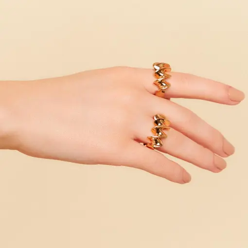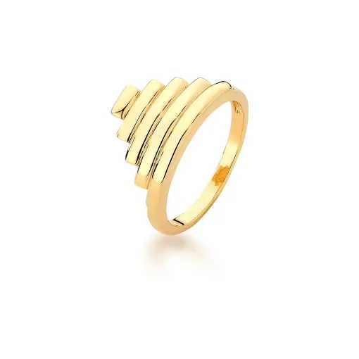 0115618 - ANEL GEOMETRICO TEXTURIZADO LISO BANHADO A OURO