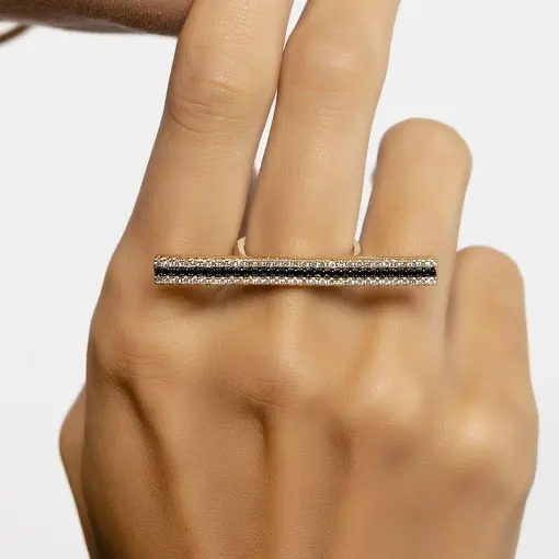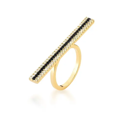 0115027 - ANEL TRÊS FILEIRAS COM ZIRCÔNIAS BRANCAS E PRETAS BANHADO A OURO