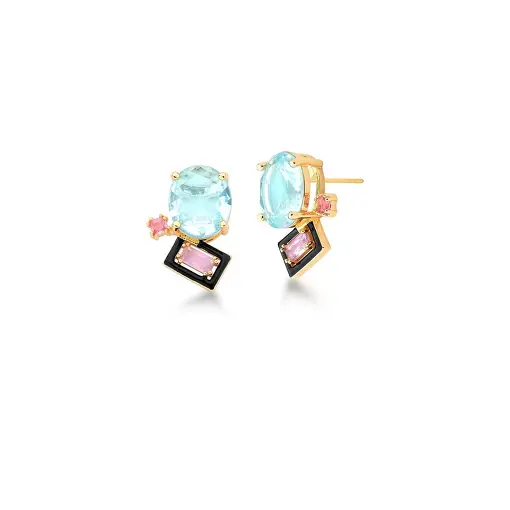 0234467 - BRINCO DE FLOR COM ZIRCÔNIAS ÁGUA MARINHA BANHADO A OURO