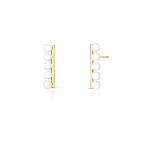 0240326 - BRINCO CURVO COM CINCO PÉROLAS SHELL BANHADO A OURO