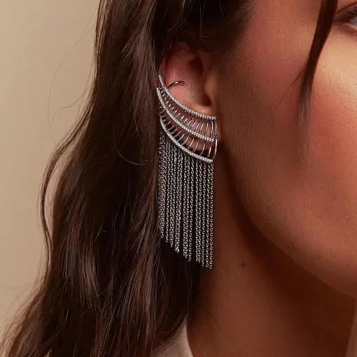 0220888 - BRINCO EAR CUFF CRAVEJADO COM FRANJAS LISAS