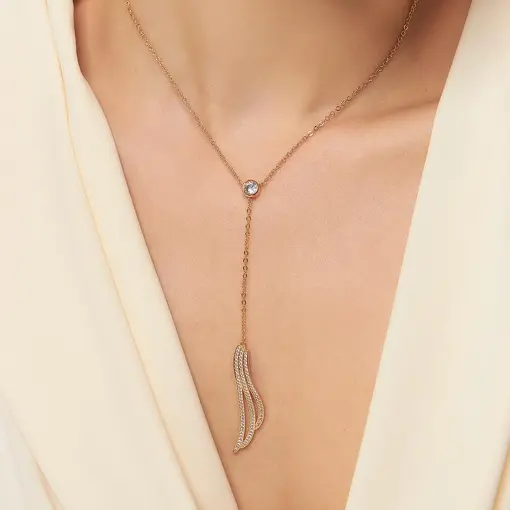 3020018 - COLAR GRAVATA COM PINGENTE DE ASA CRAVEJADA DE ZIRCÔNIAS