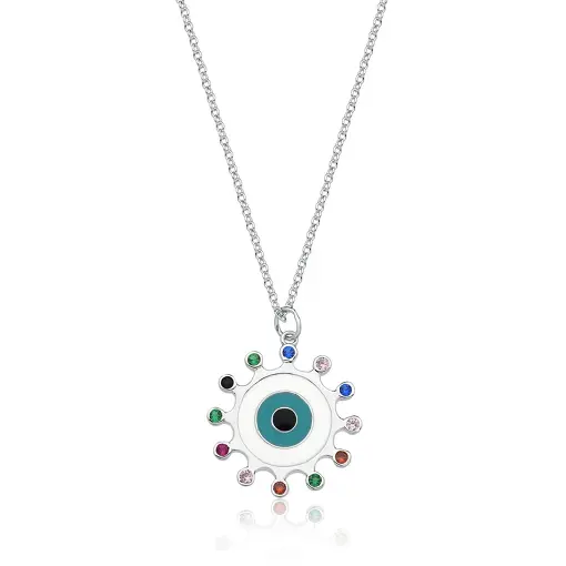 3015599 - CHOKER COM PINGENTE DE OLHO COLORIDO FOLHEADA A RÓDIO