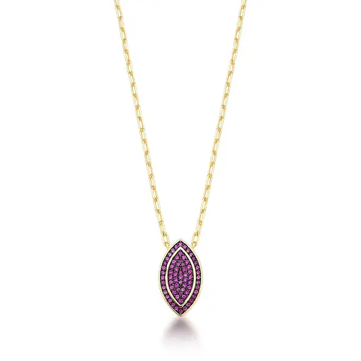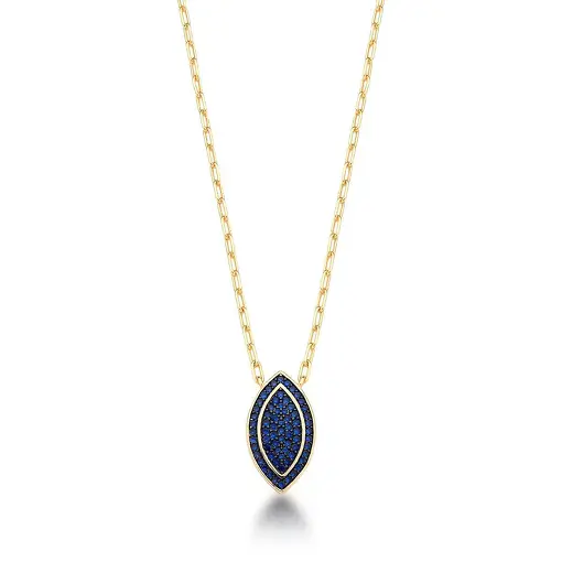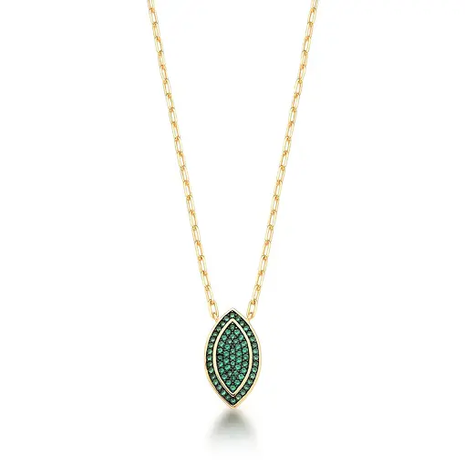 3020456 - COLAR COM PINGENTE DE NAVETE CRAVEJADO BANHADO A OURO