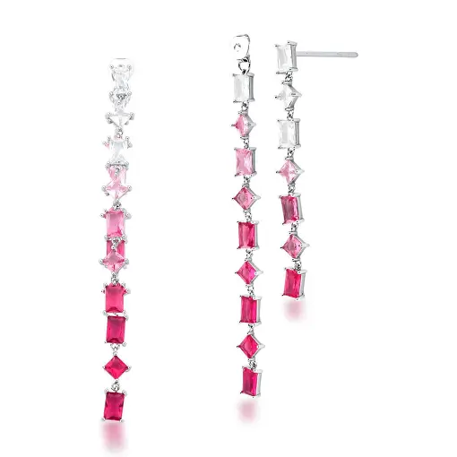 0212188 - BRINCO DE CORAÇÃO COM ZIRCÔNIAS ROSAS PRATA RODINADA