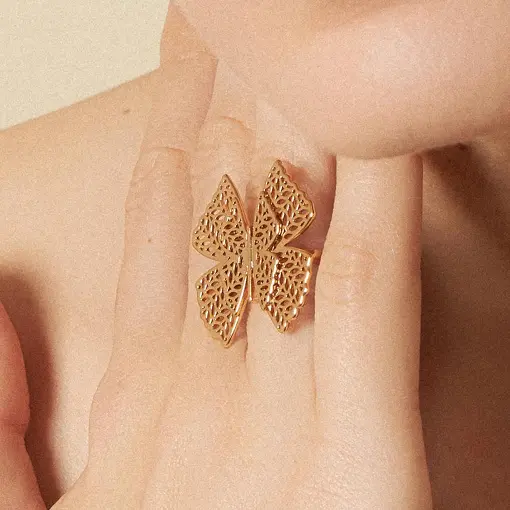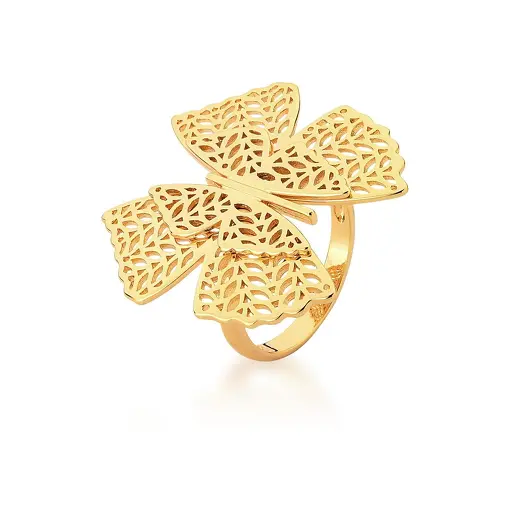 0113581 - ANEL DE BORBOLETA VAZADA E LISA BANHADO A OURO